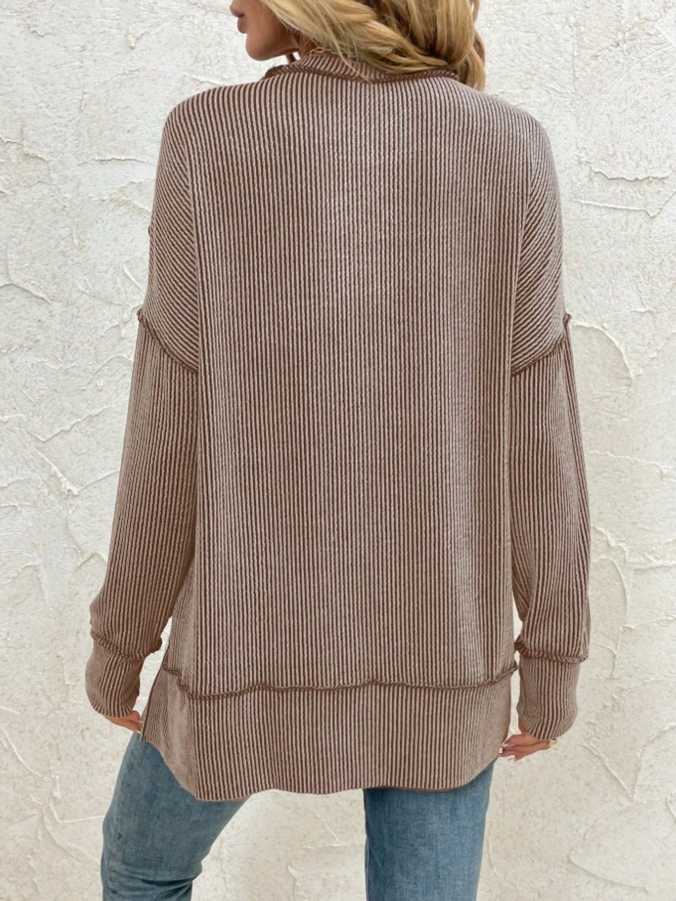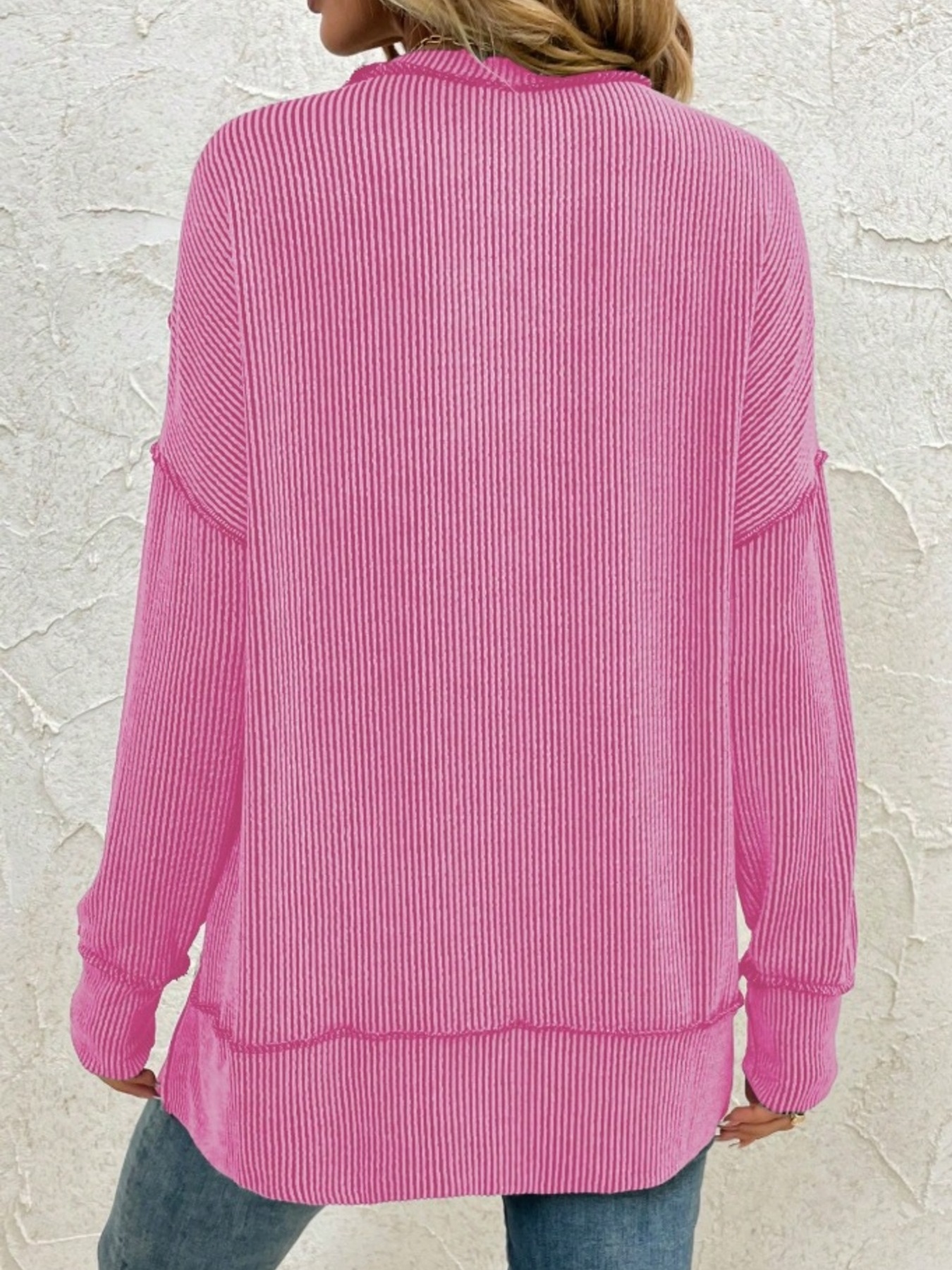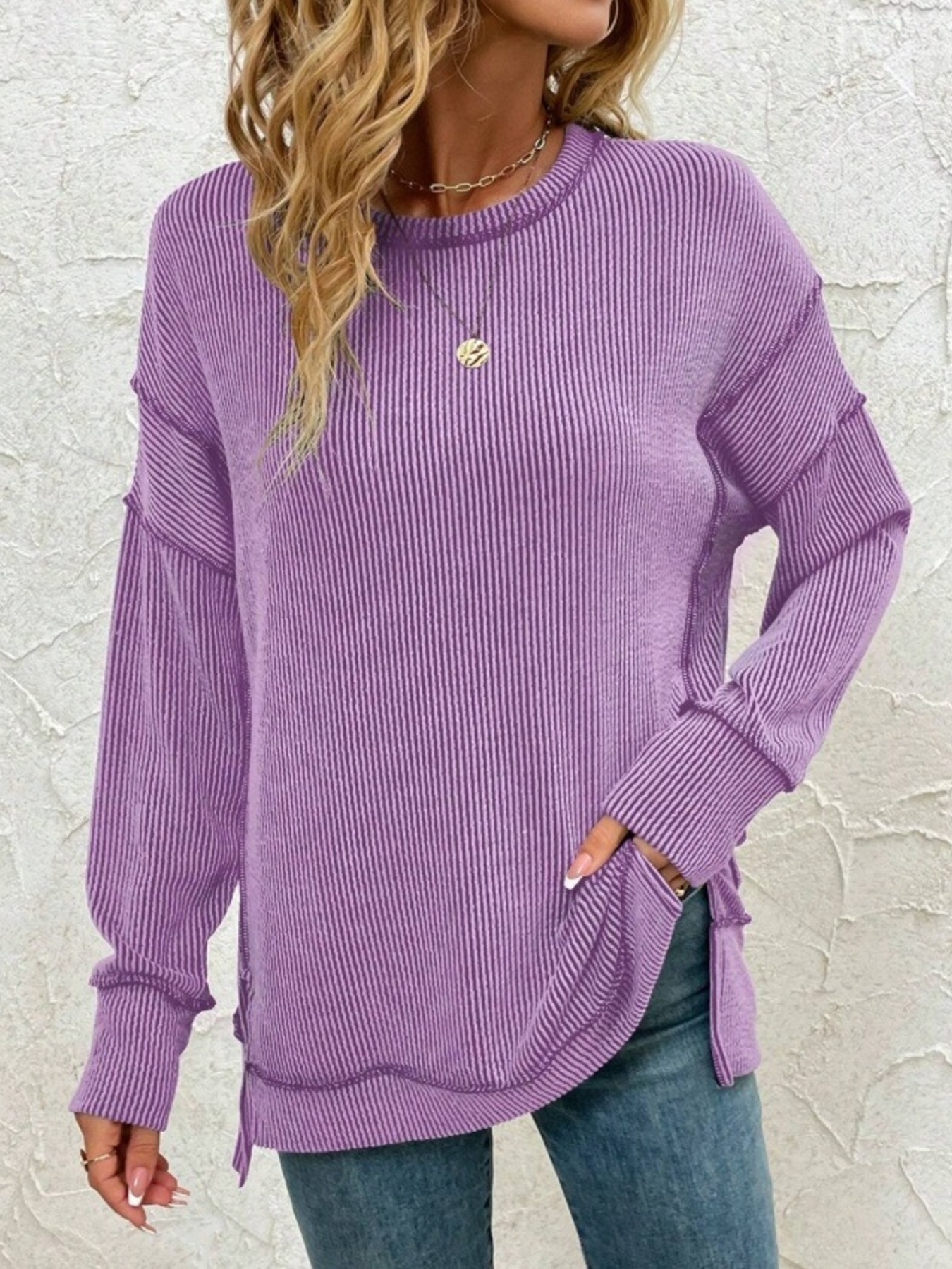 Side Slit Round Neck Dropped Shoulder Sweatshirt