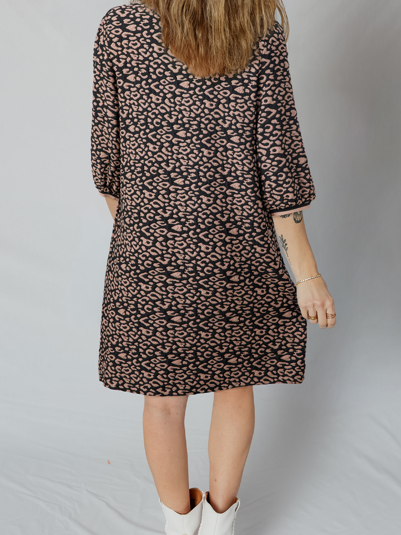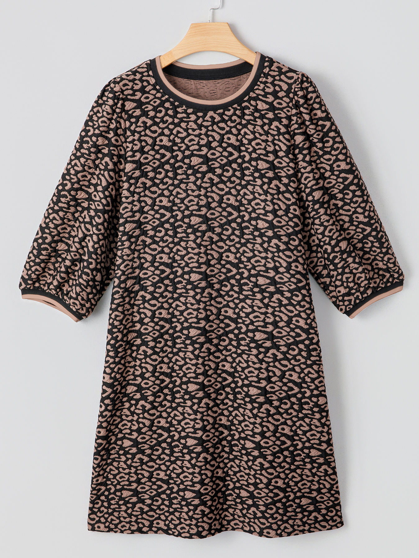 Leopard Print Bubble Sleeve Shift Mini Dress